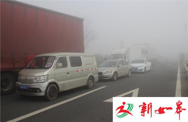 上午8点多,在淮安城区看到路上许多车辆纷纷打开雾灯和近光灯,车辆行人车速都很慢,交通信号灯在大雾中若隐若现,在G25,G2513高速收费口,受大雾影响淮安境内高速仍处于封闭状态, 高速出入口附近道路积压的车辆将近500多辆,绵延3公里左右,车辆不得不停在路边。其中一名淮安男子准备去无锡喝喜酒,开车跑遍淮安四个高速出入口都发现关闭了,由于国道上的大雾也非常大,男子只能继续在原地等待,这顿喜酒可能也没法喝上了。