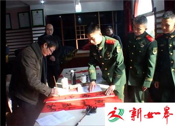 当天下午,淮安涟水消防中队的大院里琴声悠扬,歌声嘹亮,随着音乐的旋律,喜庆、 祥和的氛围随即带动了现场的官兵和志愿者。一首首动听的歌曲,一个个好看的舞蹈, 不时赢得官兵们阵阵热烈的掌声。这边忙着联欢,那边的书画家们也正忙的不亦乐乎, 大家奋笔疾书书写春联,遒劲有力的书法赢得了消防官兵们的啧啧称赞。傍晚时分,志 愿者们又买来了肉陷,与33名官兵一起包饺子,共话军民鱼水情。今年19岁的吴杰是无 锡市人,是名刚入伍不久的新兵,这次在部队过年,他感到是件非常快乐的 事,他很想通过网络告诉家中的爸爸妈妈,往年在家都是吃父母做好的饺子,今年他和叔叔阿姨们同联欢,他还学会了包饺子,这个年过的也很热闹。