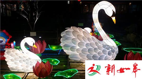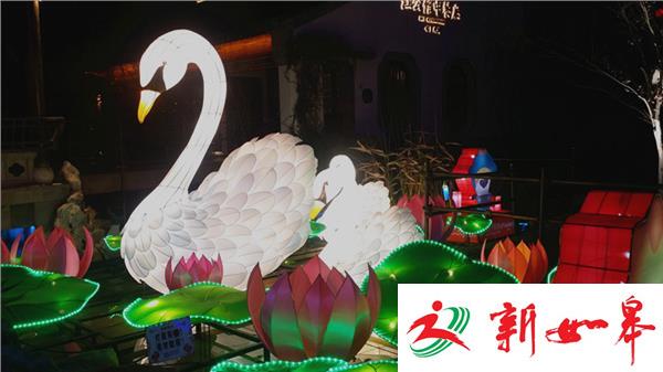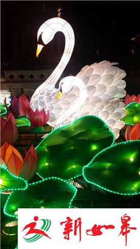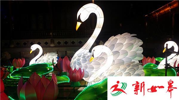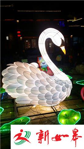 “ 鹅,鹅,鹅,曲项向天歌。白毛浮绿水,红掌拨清波。”初唐诗人骆宾王的《咏鹅》的场景被今年的第31届秦淮花灯所采纳。在今天晚上亮灯的南京老门东景区入口处,一组栩栩如生的咏鹅花灯优美而动人。雪白的白鹅与绿色的荷叶、红色的莲花相得益彰,在灯光的照耀下显得十分迷人。众多南京市民和外地游客在这里驻足观看,许多市民和游人还用相机和手机记录了这一秦淮灯彩的美景。