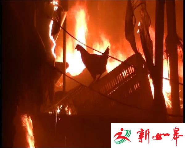 凌晨5点多钟,天还没有亮,这家养鸡场陷入一片火海之中,火光冲天,浓烟滚滚,关键时刻,养鸡场主人赶到,打开鸡棚门,让数千只受到惊吓的鸡四散逃生。消防人员赶到现场后,立即出动两支高压水枪扑救,大约40分钟后,养鸡场的火被完全扑灭。所幸救援及时,除了部分塑料大棚烧毁外,没有造成更大损失。据养鸡场主人说,当时他们正在睡觉,是附近船上渔民看到起火后打电话给他的,他们起来后一边赶紧打开鸡棚的门,让鸡自行逃生,一边报警求助。目前,起火原因正在进一步调查处理中。