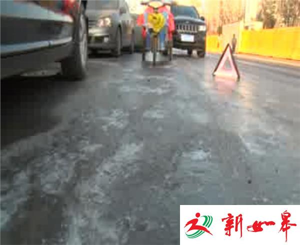 今天(元月21日)早上,南京的室外气温是零下6、7度,上午8点左右,在南京秦淮区象房村路上大约500米路面有积水结冰,结果引发了两车相撞,所幸并无人员受伤。