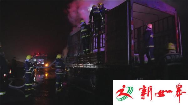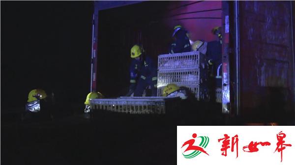 新沂消防中队到场后,指挥员立即把现场所有消防官兵分为三个梯队,第一梯队出一支水枪对准车头进行灭火,第二梯队再出一支水枪堵截火势向车厢上蔓延,在灭火的同时,第三组消防队员把车上的白鹅一箱箱的搬运下车。大约20分钟后,大货车上的明火被全部扑灭,2000多只白鹅也全部被搬运到了路面上