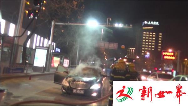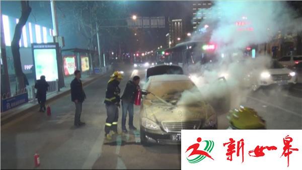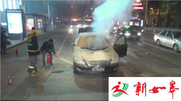 1月16日晚上9点40分左右,一辆奔驰350轿车沿中山南路由北向南行驶到文亭街路口时,车主突然在车内闻到了一股焦糊味。由于当时正在快车道上,车主就急忙想把车子停在路边,正好路口的红灯亮了。大火迅速蔓延开来,车头冒出一米多高的火苗,周围其他车辆紧急躲避到一边。