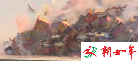 当天上午11点多,工作人员按下起爆器的按钮,收缴的3500多箱假冒伪劣烟花爆竹瞬间燃烧起来。天空中升腾起一片浓烟,并响起震耳的鞭炮声。