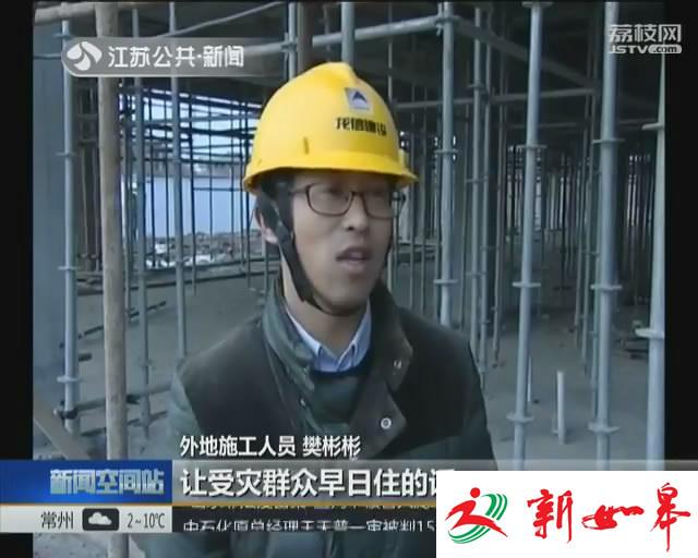 今年34岁的樊彬彬,老家在南通,是装备式建筑一名普通的技术人员,计桥、双桥安置点共有3个装备式建筑,工程的质量和进度是他最为关心的,每天他都要在安置点上进行6次工程质量检查。虽然已是临近年关,家人也经常打电话来催他回家团圆,但他始终和很多工人一样,奋战在施工一线。樊彬彬说,虽然回去和家人团聚晚一点;但是早日将这个工程建成完成,让群众早日入住。