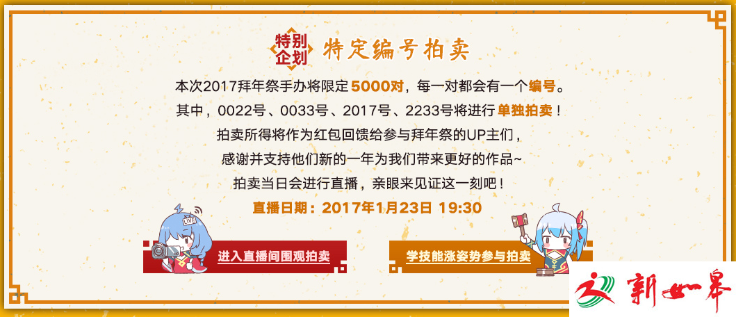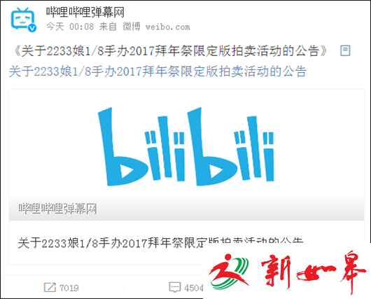 以下为B站《关于2233娘1/8手办2017拜年祭限定版拍卖活动的公告》全文: