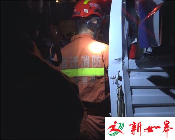 1月16日凌晨3时10分左右,宿迁市泗洪县消防大队泗洪中队接到报警称:在泗洪县周李小区向西路边,两辆货车相撞,一人被困。接到报警后,泗洪中队立即出动一辆抢险救援消防车,6名官兵前往处理。