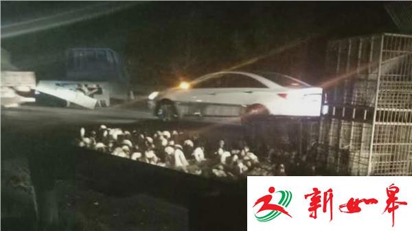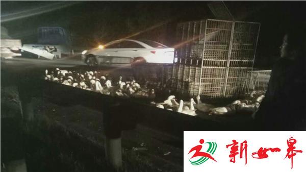 前两天晚上,扬州市扬天公路发生一起交通事故,一辆大货车与一辆运鹅的小货车发生碰撞。顿时,数百只鹅散落一地,大货车驾驶员受了伤。