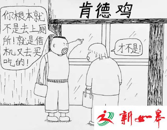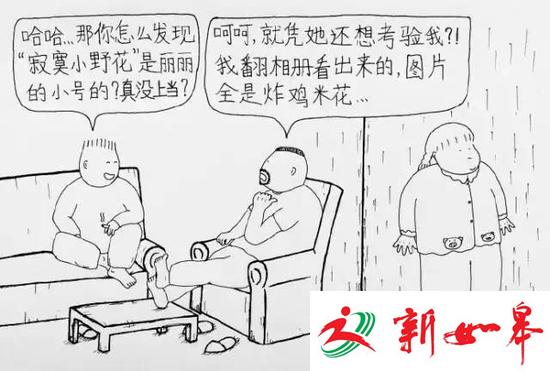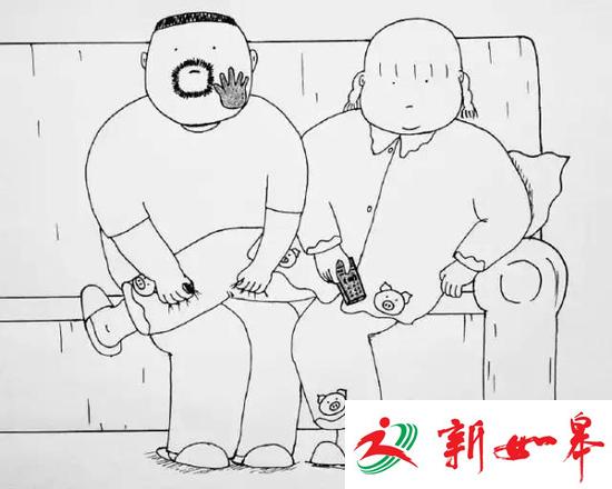 毛寸头+一圈胡渣的就是老田,胖嘟嘟的就是丽丽。把老婆画成这样不怕挨揍吗,哈哈哈!