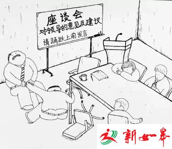 @流浪的红拖鞋:这个图表达的明明是“领导诚心诚意求批评,你们怎么没一个人上台,只好我亲自来拽”的意思啊!