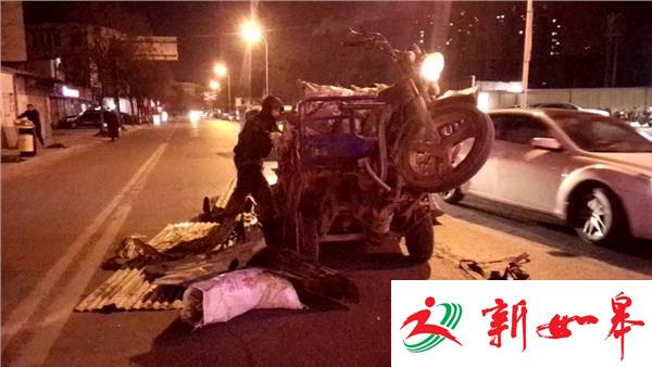 1月15日晚上8点左右,淮安市区清河路上一男子驾驶三轮货车,由于车上80多袋垃圾导致失重,车头悬空翘起,男子从车上摔落好在人没事,但是车上几十袋垃圾倾翻在路上堵了由南往北两股车道两个小时。