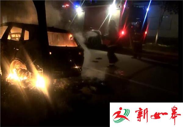 昨晚(11月14号)十点半钟,有市民报警说,在235省道淮安市涟水县黄弯桥路段,有两辆正在行驶的轿车突然发生碰撞,其中一辆刚买的新车 起火,情况十分危急,涟水县消防中队接到报警后立即赶往现场进行扑救。