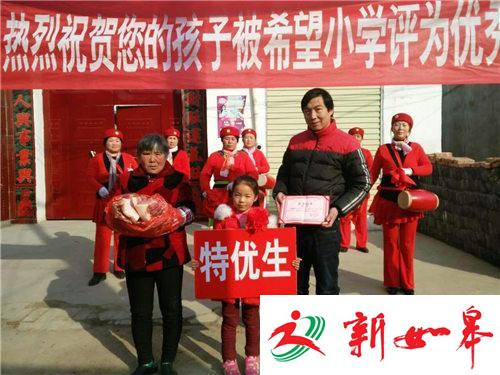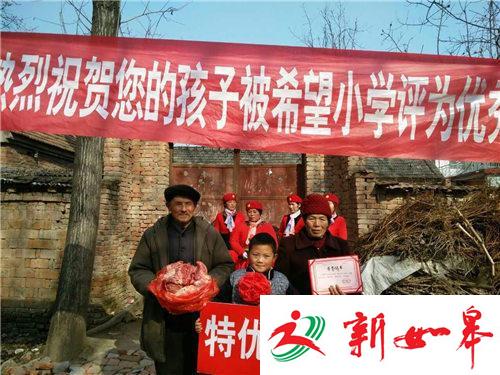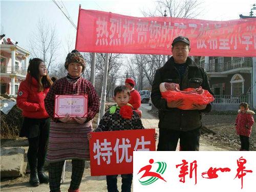 据介绍,在周口郸城县秋渠乡2016-2017学年度抽评考试中,秋渠乡希望小学综合成绩在全乡一路领先,有5人喜获“双百分”,12人喜获单科100分。为了表彰这些孩子们取得的优异成绩,学校在超市精心购买了数十个猪后臀,敲锣打鼓挨个村子给孩子们送去,并鼓励孩子们继续努力、保持成绩,健康、快乐成长。