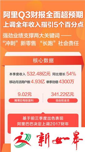 平台治理成效为阿里巴巴中国零售平台业绩强劲增长带来助力因素。截至2016年12月底止的季度财报显示,阿里集团当季收入同比增长54%,达532.48亿元人民币;核心电商业务收入同比增长45%,达465.76亿元人民币。