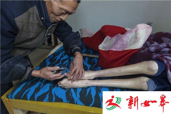 “你看他这双腿已完全萎缩了。”吴建勋一边说着一边掀开被子,帮弟弟翻身,换个睡姿,弟弟完全变形的双腿让人不忍多看一眼,吴建勋告诉记者,照顾弟弟成了自己和老伴每天的“必修课”,自1999年开始,18年来,日复一日,擦身、洗衣、喂饭、喂药……从未间断。