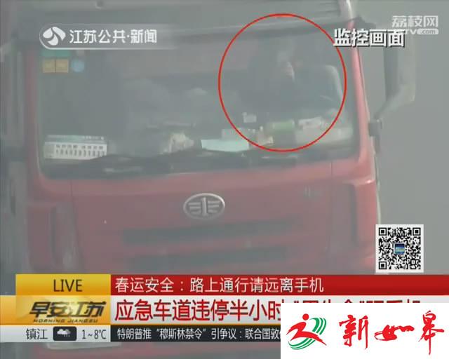 这是淮徐高速146公里处监控抓拍的画面,这辆大货车违停在应急车道上,驾驶员既没有开启双闪警示灯,也没有在车辆后方摆放警示标志。民警将监控推近一看,发现驾驶员正半躺在驾驶室内悠闲自在地玩着手机。