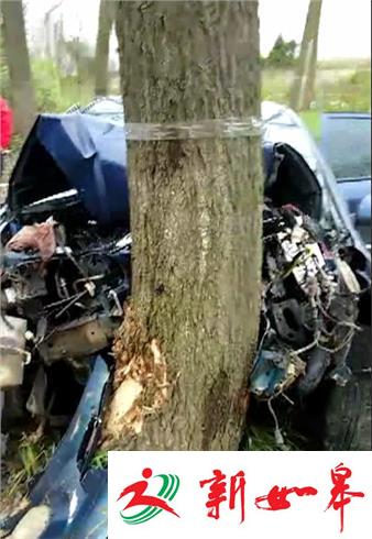 现场有一辆蓝色BYD轿车,头北尾南撞在该道路西侧路边的大树上,发动机己经报废驾驶员座在驾驶室一动不动,在车的后面还有4棵被拦腰撞断,车上驾乘人员共三人。车上有二人被随后赶来的120医生诊断己经没有生命迹象,经了解此次事故是单方事故,目前,死亡的二人被送到大丰殡仪馆,还有一名女子己经送往医院治疗。