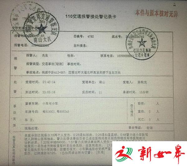 交警接处警记录卡。