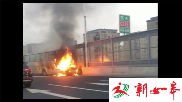 昨晚(4月1日)7点左右,312国道苏锡交界东的高架上,一辆行驶中的长途大巴车突然起火。大火从车尾部冒出,并很快蔓延开来。司机发现情况后立即停车疏散乘客。随后,消防队员赶到将大火扑灭。据初步判断,火灾很可能是线路短路造成的。所幸的是,火灾没有造成人员伤亡。
