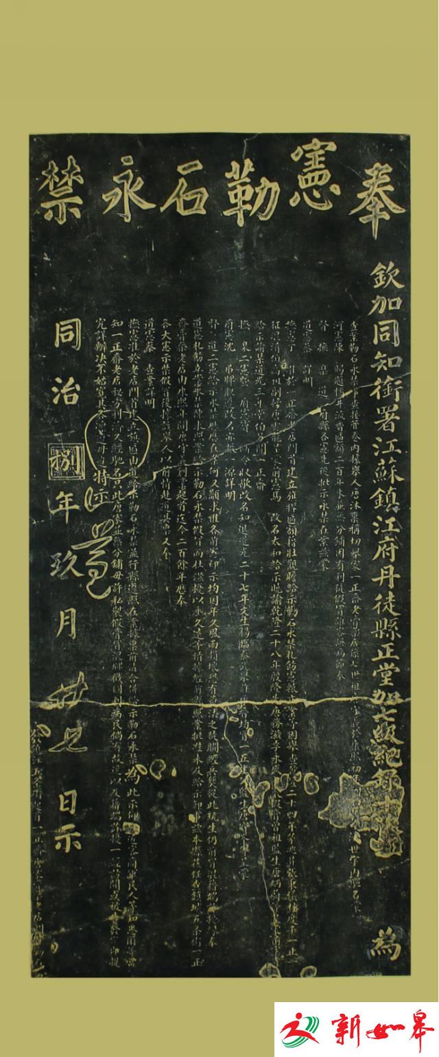 自康熙——同治的二百年间不断出现假膏,诳客误病,有损一正膏的信誉。唐氏历经七代人的不懈诉讼,不停打假,于同治八年节奉督、府、臬、道、府、县各级官署衙门批准立碑“奉宪勒石永禁”,即中华禁假第一碑。石碑现镶立在门楼店堂墙面,是唐家的“镇店之宝”。