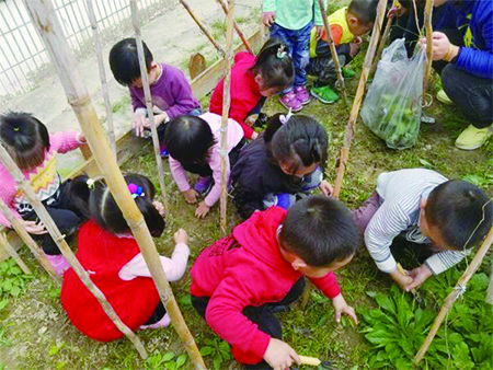 种植园地是孩子们最喜欢的秘密花园,在种植园里进行简单的种植活动,使他们直观地感受到植物的生长过程,亲身体验到劳动的快乐,从小养成爱劳动、与同伴合作等优良品质,激发了他们热爱生活和热爱大自然的美好情感。