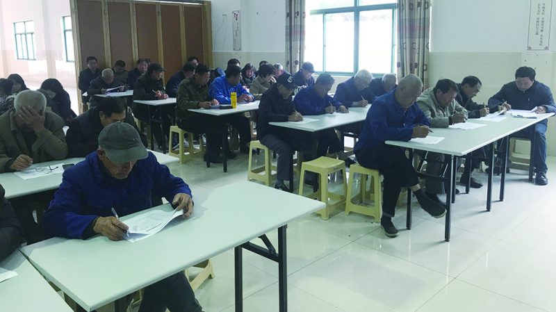 11月6日下午两点,如皋工业园区党委委员人武部部长吴来平携考察组一行,在沿河村民活动中心,对沿河村两委班子及成员进行考察。