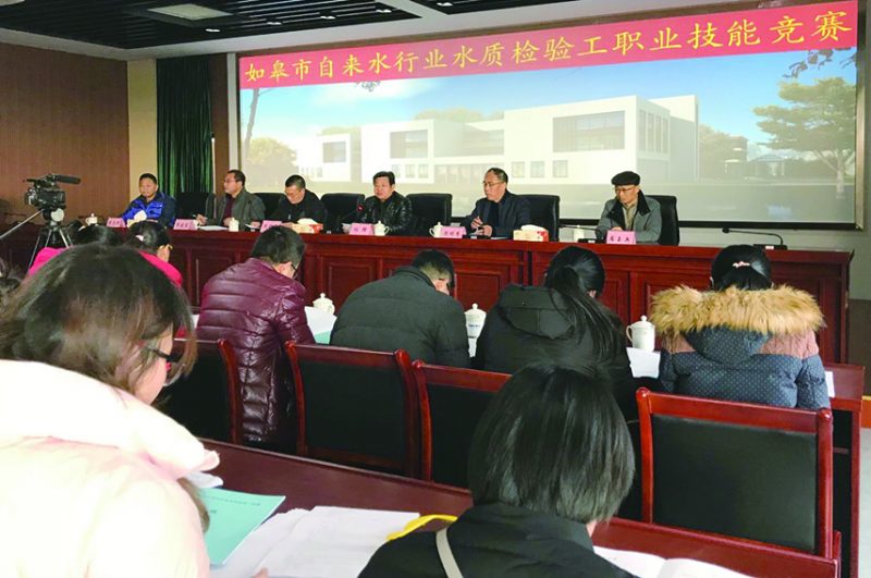 近日,2017年如皋市自来水行业水质检验工职业技能竞赛典礼在龙泉检测中心三楼会议室举行,如皋市总工会副主席周维宽、如皋市住建局副局长林峰、如皋市人力资源和社会保障局主任郭建东、如皋市自来水厂厂长沈明慧等领导,以及参赛员工出席了此次活动。