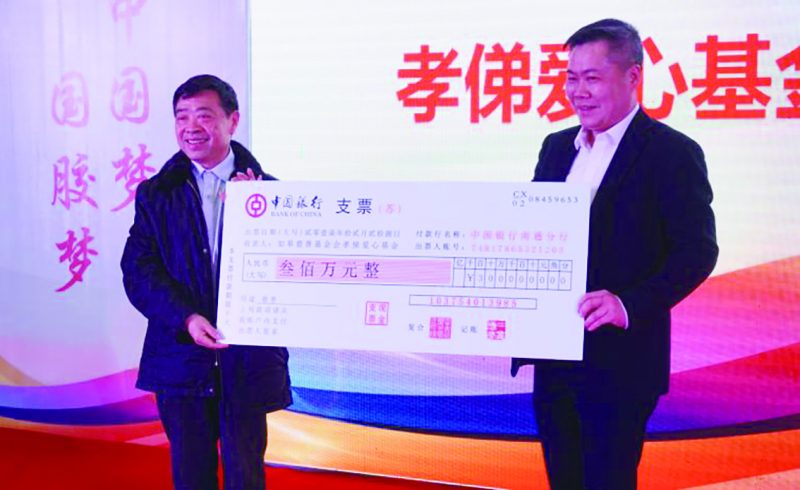 近日,“孝俤爱心基金”揭牌暨颜德岳院士工作站、国胶产业园签约仪式在如皋市长江镇(如皋港区)举行。签约仪式上,由江苏国胶化学科技有限公司向所在地如皋市慈善基金会发起设立的“孝俤爱心基金”正式成立,公司董事长张孝俤将300万元“孝俤爱心基金”的银行现金转账支票交到如皋市慈善基金会理事长石耀的手中,随后两人共同为“孝俤爱心基金”揭牌。在他的影响下,现场前来参加签字仪式的协作企业上海宏孝新能源科技有限公司董事长杨尊东、中膜新材料科技有限公司董事长陈华、金旺胶粘新材料科技有限公司董事长钟则勇和上海三信化学科技有限公司董事长李国庆也分别为“孝俤爱心基金”捐款10万元。此项基金主要资助我国贵州、四川、青海等西部欠发达地区贫困家庭儿童、失学儿童以及企业所在地的扶贫济困、捐资助学、灾害救助、养老设施建设等其他公益慈善活动。