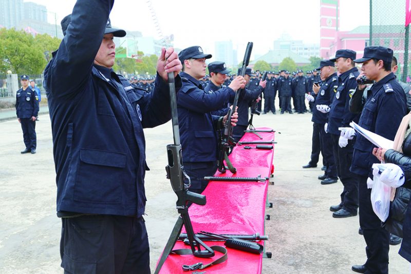 为进一步提高如皋市武装押运员应对突发事件的能力,熟练运用手中武器,12月28日下午,由如皋市保安服务公司组织的“武装押运防抢演练暨岗位技能竞赛”活动在如皋市实验初中举行。如皋保安服务公司总经理戴勇军、副总经理徐建军、如皋市各大金融机构领导以及140多名保安押运员参加活动。