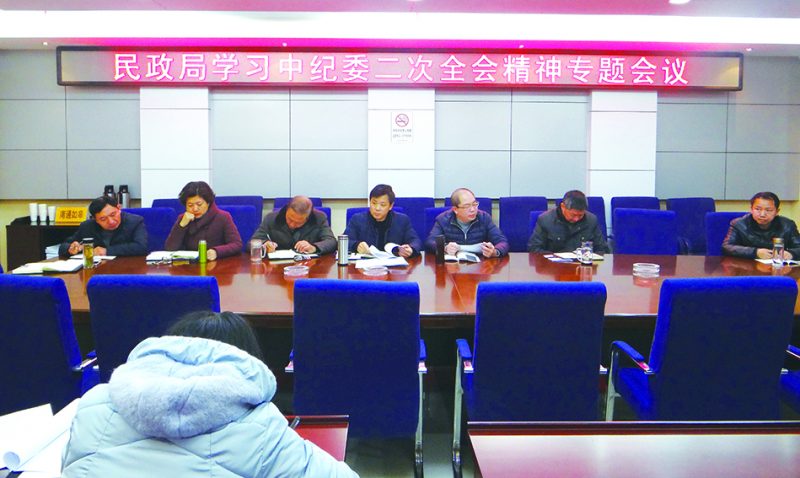1月16日,如皋市民政局召开党员干部专题学习会议,学习落实习近平总书记在中国共产党第十九届中央纪律检查委员会第二次全体会议上的讲话精神。局党组书记、局长狄邦建主持会议,要求以永远在路上的执着把全面从严治党引向深入,继续强化民政系统党风廉政建设工作。