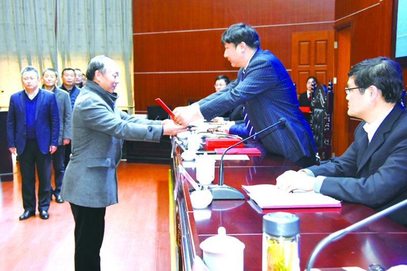 任命仪式上,如皋市人大副主任张勇宣读对160名人民陪审员的任命决定,吴道健主任为陪审员颁发了人民陪审员任命书。2名新任陪审员代表作表态发言。