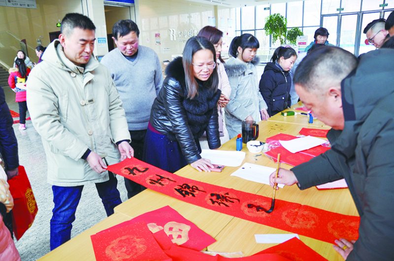 本报讯 (通讯员 左菁)2月9日也是南方小年,这天下午,如皋市图书馆一楼大厅内翰墨飘香,不少读者来到现场排队等候领“福”字和春联,为图书馆增添了一份新春佳节的喜庆氛围。