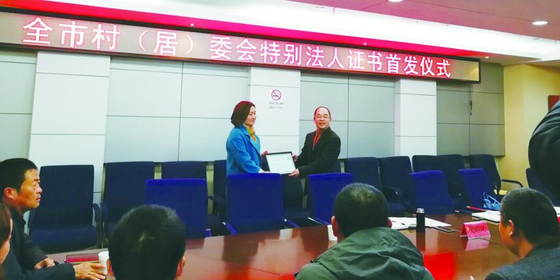 13日下午,如皋市行政中心A5会议室举行了一场特殊的颁证仪式,如城街道各村(居)委会主任正式接过《基层群众性自治组织特别法人统一社会信用代码证书》,成为如皋市首批拥有特别法人“身份证”的村(居)委会主任。有了这张“身份证”, 村(居)委会开展社会、经济活动事项将更加顺畅。