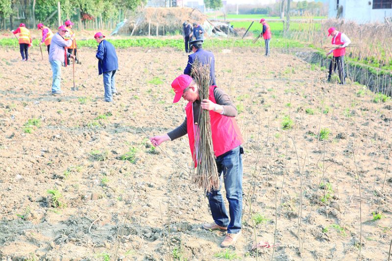 3月12日下午两点,沿河村两委会成员、沿河村妇联成员,如皋市聚宝行汽车销售服务有限公司部分成员及客户,来到沿河村十二组植树区域参加活动。本次植树节活动树苗由万禾生态园友情提供,大家挖坑放苗、填坑浇水,大家或两人一组,或三五成群,各司其职,合力栽树,处处呈现一片热火朝天的忙碌景象。经过大家共同努力,一棵棵朴树在沿河村安家落户,为沿河村生态绿化添加了一道靓丽的风景线。
