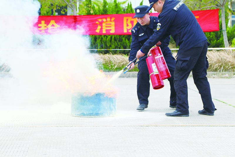 在消防演练过程中,参加演练的人员使用手提式干粉灭火器,控制火势、扑灭燃着物,圆满完成了灭火实战演练任务,工作人员的灭火实战能力得到了提高。