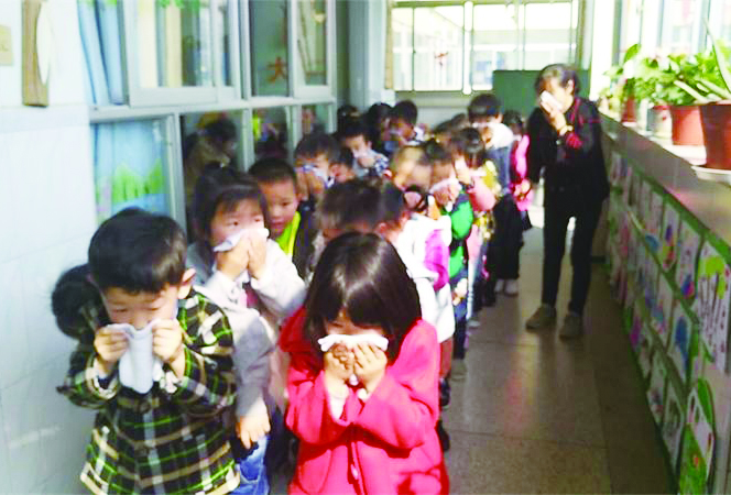下午两点整,伴随着集合警铃声的想起,消防演习正式开始。教师们三位一体,在队伍的前中后,迅速按紧急预案的疏散线路带领幼儿拿起湿毛巾,捂住口鼻,弯腰小步快走,分两道楼梯迅速且有序下楼,最快的班级仅用时33秒。为了增加活动的真实性,幼儿园特地制造了火灾场景,并通过灭火器对火盆进行灭火,火烧的黑烟、灭火器的干粉,都让幼儿切实体验到火灾的紧急危险、灭火的工具如何使用,从而提高自我保护的意识,整个演练活动紧张有序。