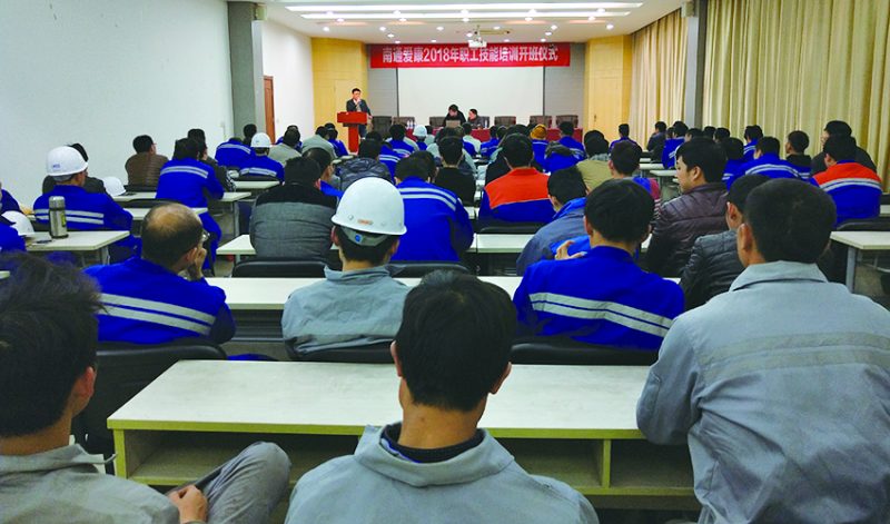 南通爱康金属科技有限公司是一家专业生产高档太阳能铝型材、建筑铝型材和工业铝型材的企业。近年来该企业高度重视职工技能水平提升,本次开班是市技工学校为南通爱康职工量身打造的金属挤压工、机修钳工中、高级工种的培训,共有学员400人左右,培训采取集中面授与自习相结合方式,注重理论授课与实践操作相结合,课程包含安全生产、机械视图、金属材料基本知识等多个内容。