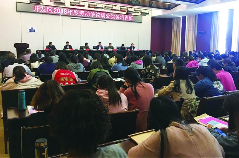 为强化企业劳动法律法规意识,帮助企业应对劳动用工中遇到的法律问题,促进企业依法用工、依法管理,进一步构建和谐劳动关系,4月19日下午,开发区人社局牵头举办“2018年度劳动争议调处实务培训班”,区内近80家规模以上企业的工会、人力资源负责人及区人社局全体人员共120多人参加培训。