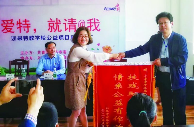 现如今,如皋特教学校受到了越来越多的社会关注,也有越来越多的爱心人士加入到关爱特殊学生的行列。徐明华在致辞中表示,安利如皋分公司青年爱心志愿者是一支比较成熟的队伍,他们热心、细心、贴心。安利如皋分公司也表示,今后将把如皋特教学校作为志愿服务实践基地,通过这个平台和孩子们交朋友、共同学习,帮助孩子们更好地融入社会。