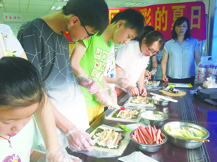 一年一度的暑期到来了,为丰富孩子们的假期生活,如城街道秀水社区组织辖区未成年人开展“欢乐做寿司”的亲子活动。