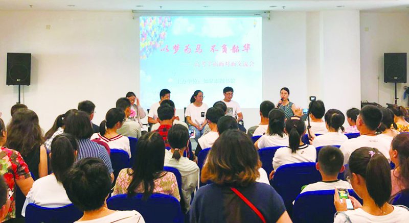 7月14日下午,如皋市图书馆特邀了如皋中学的4名学霸,在图书馆三楼培训教室与大家进行了一场零距离的接触,学霸们现场分享他们的高分秘籍、学习技巧以及课余生活,活动吸引了近百名家长、学生共同参与。