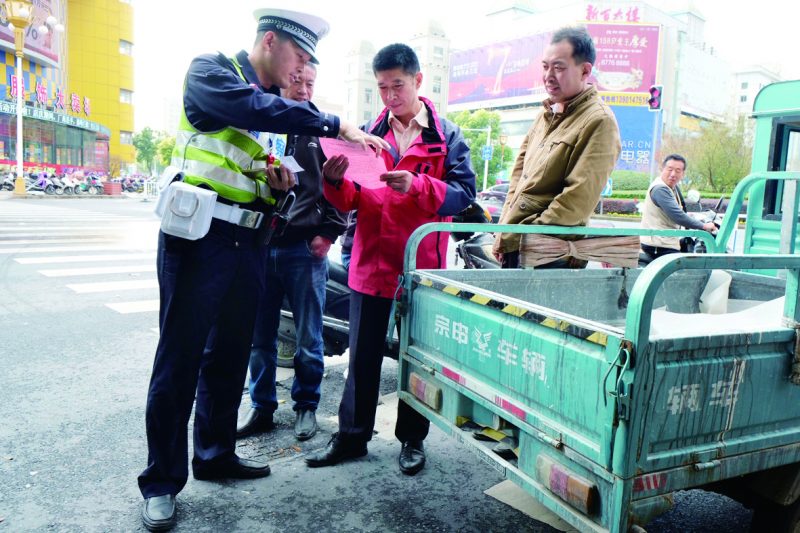 “非国标电动(燃油)三、四轮车绝大多数质量低劣、安全性能差,未列入国家发改委公布的机动车产品目录,未达到相应的国家技术标准,你驾驶这种车上路,很不安全,知道不?”12日下午,在城区宁海路与海阳路十字交叉路口,民警一边给车主递上《致广大交通参与者的一封信》,一边介绍着。一开始特别抵触的车主张某某,经过民警的教育,情绪渐渐平复,同意接受处罚,并表示以后再也不驾驶该类车辆上路。