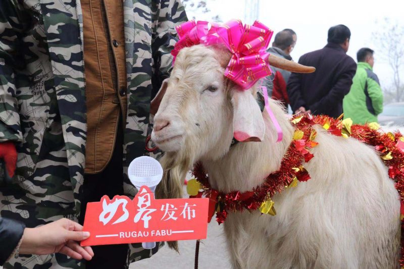“赛羊会”上,吴窑镇政府通过广泛发动,组织养羊户遴选山羊进行比赛,通过新媒体投票和现场群众投票方式,评选出了“壮羊羊”。