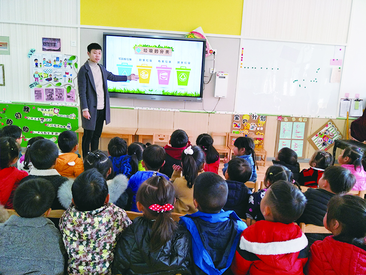 此次的活动丰富多彩,首先由该园后勤主任王利群为全体教职工进行了“垃圾分类,从我做起”的园本培训,会议要求全园建立垃圾分类工作领导小组,制订垃圾分类工作制度,并做好垃圾分类培训会议记录。接着各班开展了形式多样的环保教育活动。如小班让幼儿认识垃圾分类标志,如可回收垃圾、不可回收垃圾、厨余垃圾等,并准备了各种实物垃圾让幼儿现场进行分类;中班老师则和小朋友们一起观看视频“巧虎垃圾分类”,并进行垃圾分类游戏抢答;大班小朋友进行“垃圾分类,从我做起”的主题宣传画。活动寓教于乐,给孩子们幼小的心灵播下爱护环境的种子。