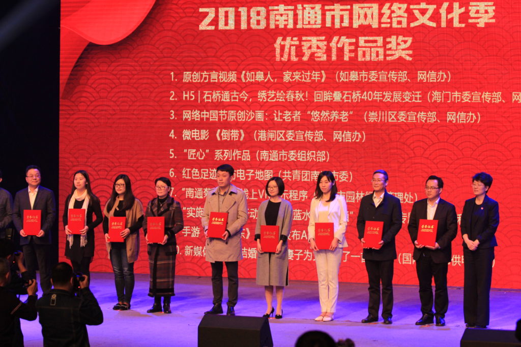 启动仪式上展示了2018年南通网络文化季活动成果,对组织推广奖、优秀项目奖、人气活动奖、优秀作品奖等获奖单位和项目进行了颁奖。同时,南通“青春e评工作室”也正式揭牌。