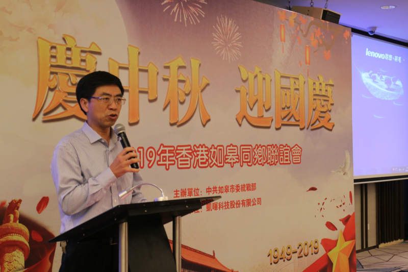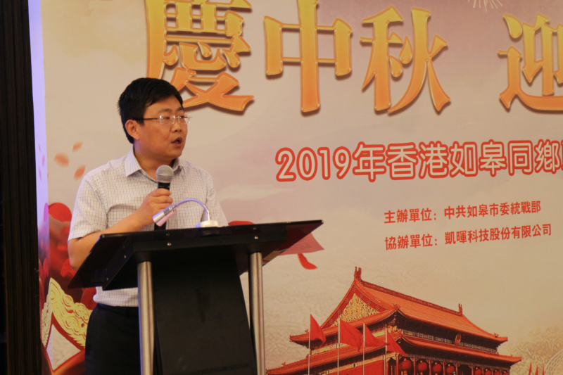 9月8日,如皋市委统战部假座深圳彭年万丽酒店举办“庆中秋、迎国庆”香港如皋同乡会联谊活动。南通市委统战副部长、市工商联党组书记王虎,如皋市委统战部常务副部长、市工商联党组书记、副主席顾卫国,如皋市委统战部副部长姚大平,香港如皋同乡会名誉会长袁亚康,香港如皋同乡会会员等共计90人参加活动。
