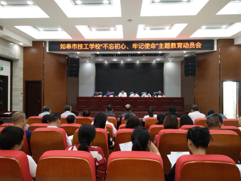 学校党总支书记负责人作了动员报告。会议指出,动员大会的主要任务是以习近平新时代中国特色社会主义思想为指导,深入学习贯彻习近平总书记在“不忘初心、牢记使命”主题教育工作会议上的重要讲话精神以及江苏省委、南通市委、如皋市委、市人社局党委的决策部署,对我校主题教育工作进行动员部署,以实际行动践行初心、担当使命。