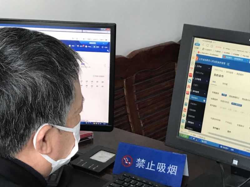 2020年2月10日上午,如皋法院白蒲法庭的老法官孙国成忙着学习使用“智慧庭审”软件,每有收获,他都喜不自禁。