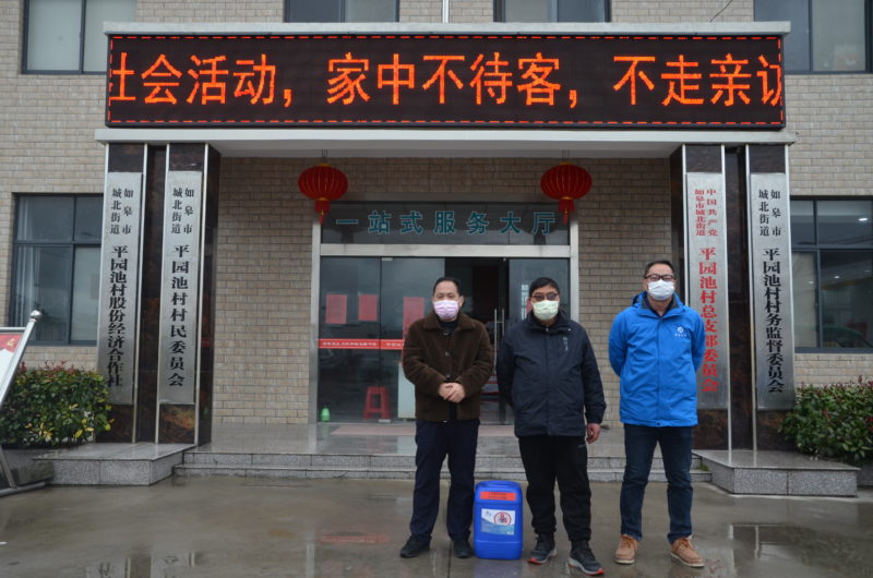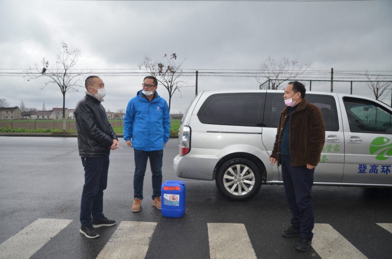 江苏登高环保科技有限公司向平园池村捐赠消毒液