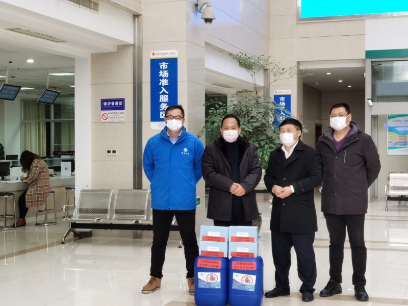江苏登高环保科技有限公司向如皋市政府城北街道办事处捐赠消毒液